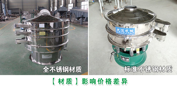 有機化肥不銹鋼振動篩是采用不同材質的不銹鋼制作而成。不銹鋼材質分為201、304、316和316L。這四種不同材質的不銹鋼之間的差價是500-2000左右。不銹鋼振動篩又分為全不銹鋼材質和標準不銹鋼材質兩種。全不銹鋼材質的振動篩全機身采用不銹鋼制作而成。標準不銹鋼材質的振動篩是與物料接觸的部位采用不銹鋼材質,相對于全不銹鋼材質的而言,價格相差600元左右。