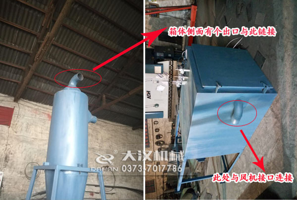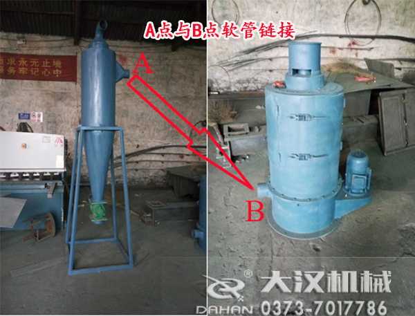 茶籽粉氣流篩與除塵器需要用軟管鏈接,怎樣連接請(qǐng)按圖示鏈接