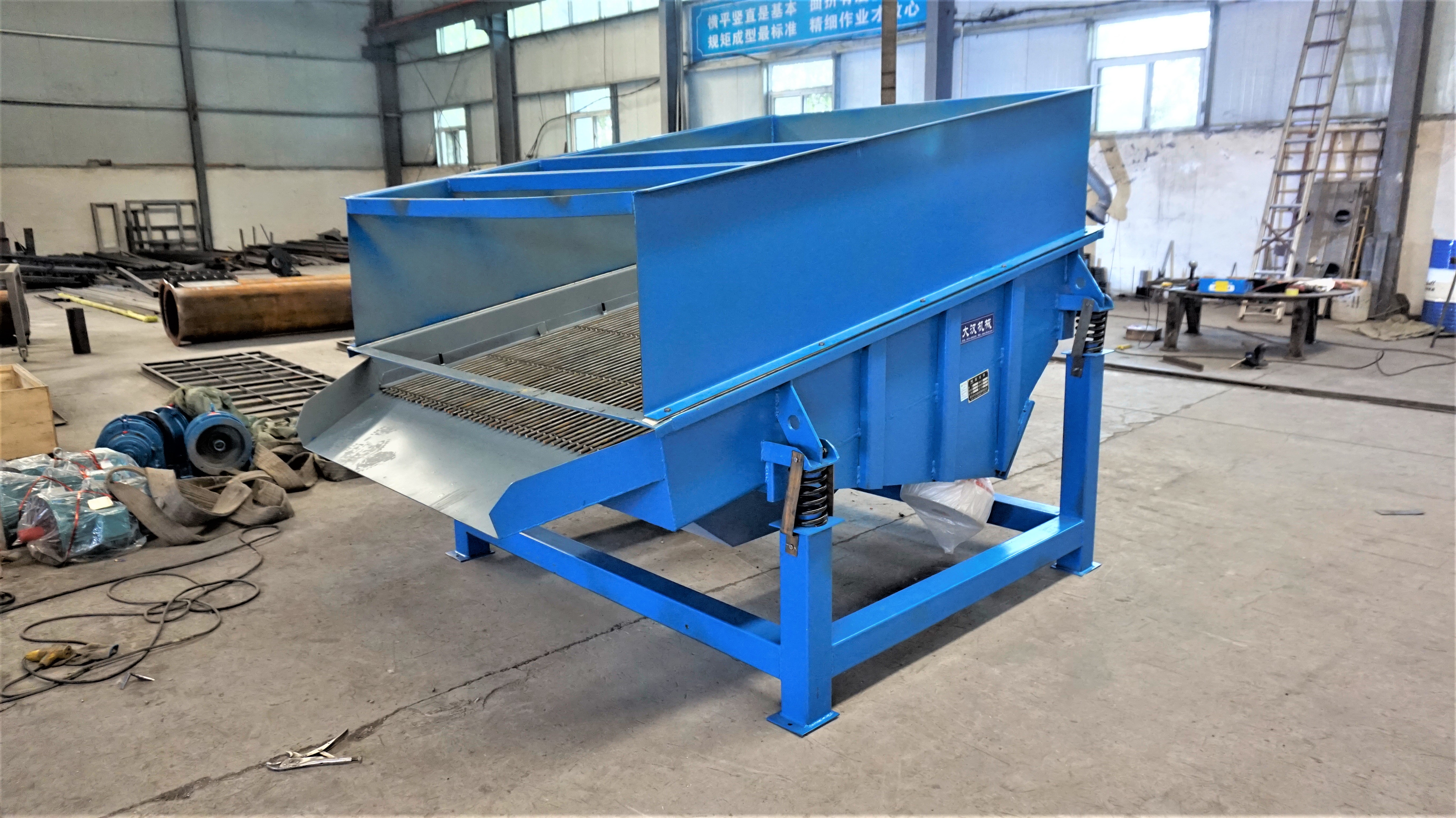 ZSG系列礦用重型振動篩是利用振動電機外拖動,使篩體沿激振力方向作周期性往復振動,物料在篩面上沿直線方向作拋物線運動,從而達到篩分目的。