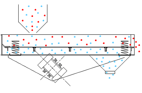 物料從給料機均勻地進入篩分機的進料口,在振動電機的激振下,向出料口方向邊跳動邊篩分,通過多層篩網(wǎng)篩分出數(shù)種產(chǎn)品和不合格的篩上、篩下物,分別從各自的出口排出,流入料倉或盛料筒.