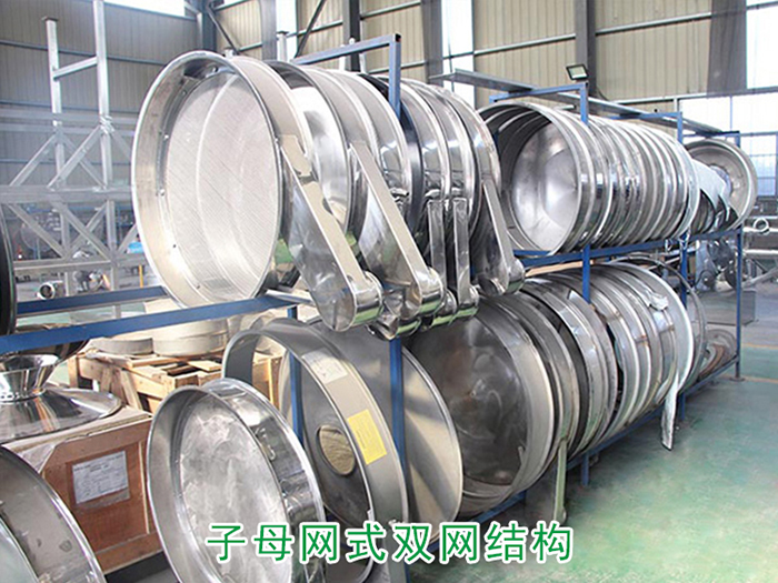 振動(dòng)篩分機(jī)網(wǎng)架型號(hào)有φ600、800、1000、1200、1500、1800等,為304不銹鋼材質(zhì)。