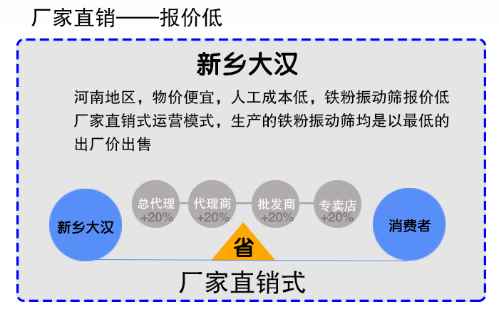 新鄉(xiāng)大漢位于河南新鄉(xiāng),廠家眾多,競(jìng)爭(zhēng)激烈,廠家之間不得不壓低價(jià)格形成價(jià)格優(yōu)勢(shì),再加上新鄉(xiāng)地區(qū)物價(jià)低,人工成本低,所以鐵粉振動(dòng)篩報(bào)價(jià)低,另外,大漢廠家采用廠家直銷式運(yùn)營(yíng)模式,生產(chǎn)的所有產(chǎn)品均是以低的出廠價(jià)出售,所以關(guān)于鐵粉振動(dòng)篩價(jià)格方面的問題,用戶完全不必?fù)?dān)心,因?yàn)榇鬂h廠家給出的報(bào)價(jià)是為合理的。